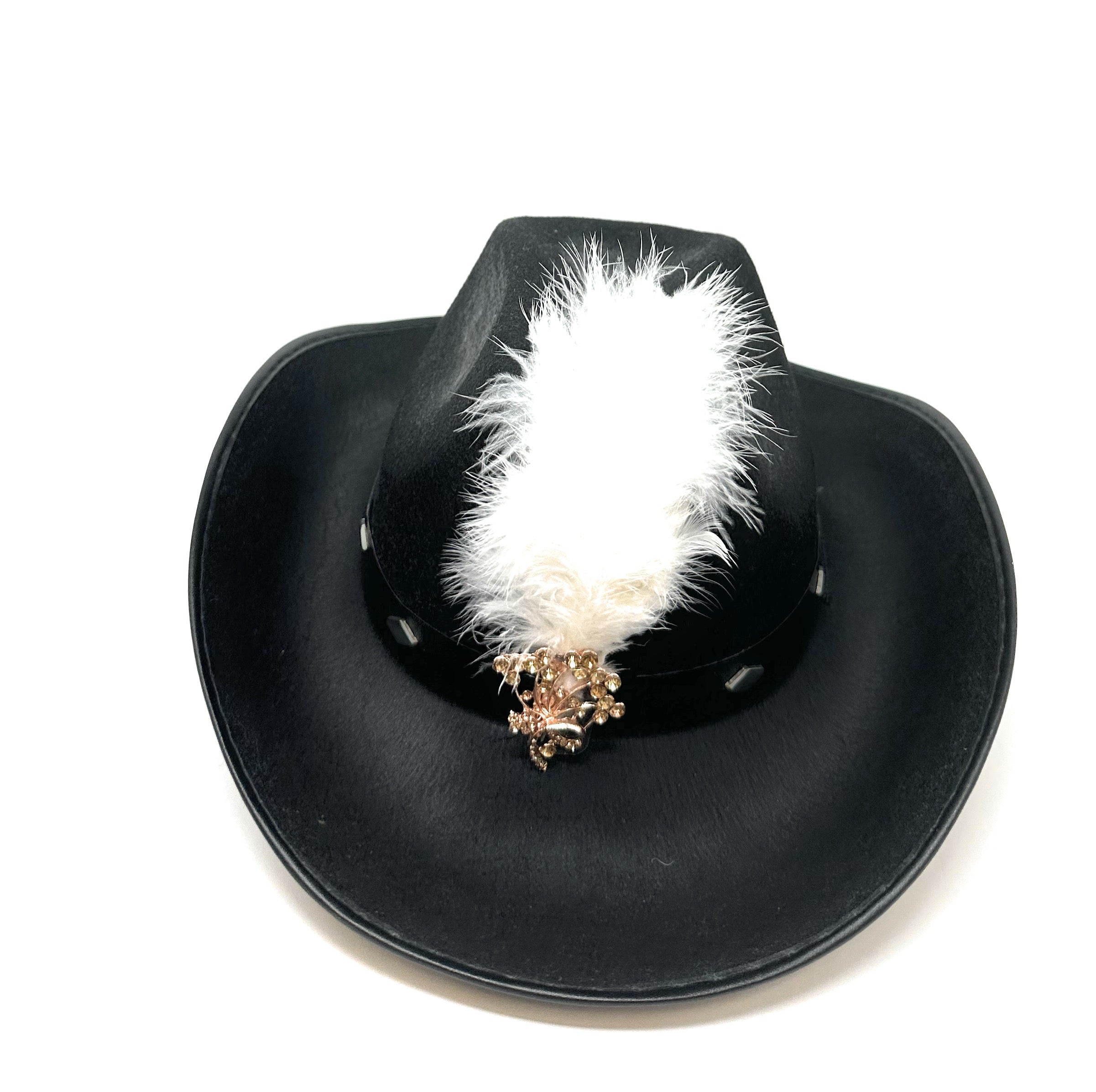 Size GuideElegant Feather & Metallic Accent Design This eye-catching hat pin features a luxurious white feather plume paired with a rose gold-tone metal base adorned with amber rhinestones. The botanical motif...