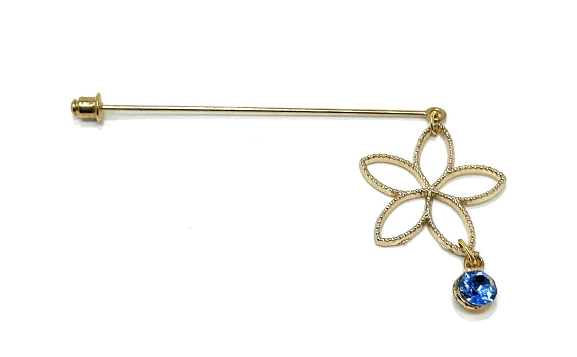 Size GuideElegant Gold Stick Pin with Floral Detail This refined accessory features a five-petal openwork floral motif in a textured gold-tone finish, enhanced with a dangling blue crystal charm for a...