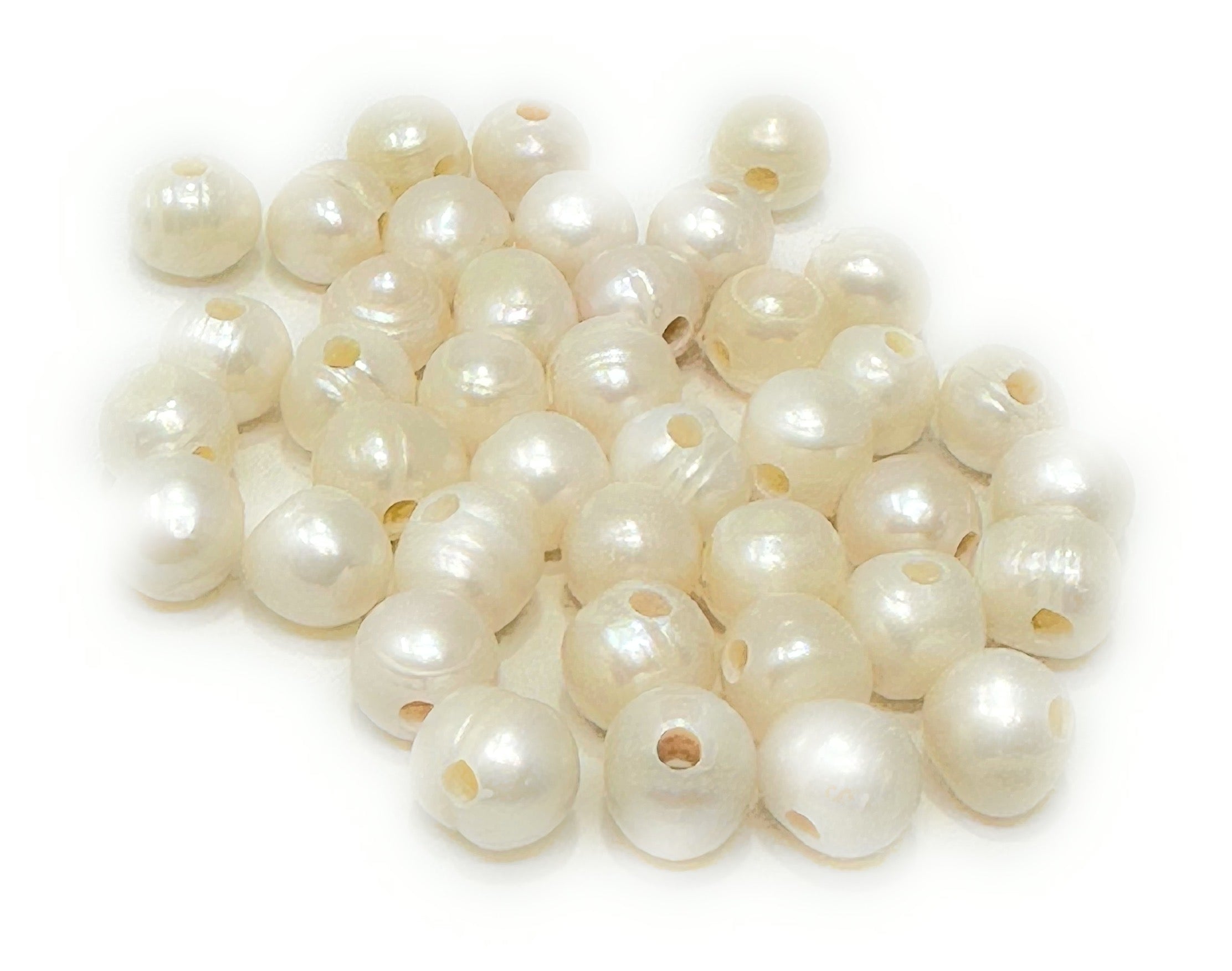 Size Guide8mm White Cultured Pearl Beads Includes 40 natural freshwater pearls, each in a smooth, polished round shape measuring approximately 8mm. These uniform beads offer a lustrous white tone and timeless...