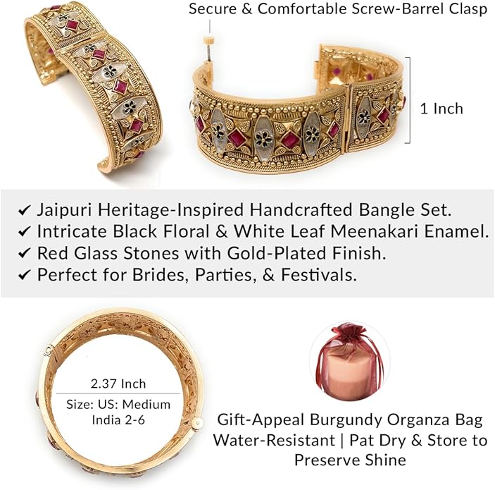 Size GuideThe Jaipuri-Inspired Openable Kada Bangle is a vibrant masterpiece of Rajasthani artistry, blending centuries-old Meenakari techniques with modern sophistication. Handcrafted with 5K gold plating, this statement piece features striking black...