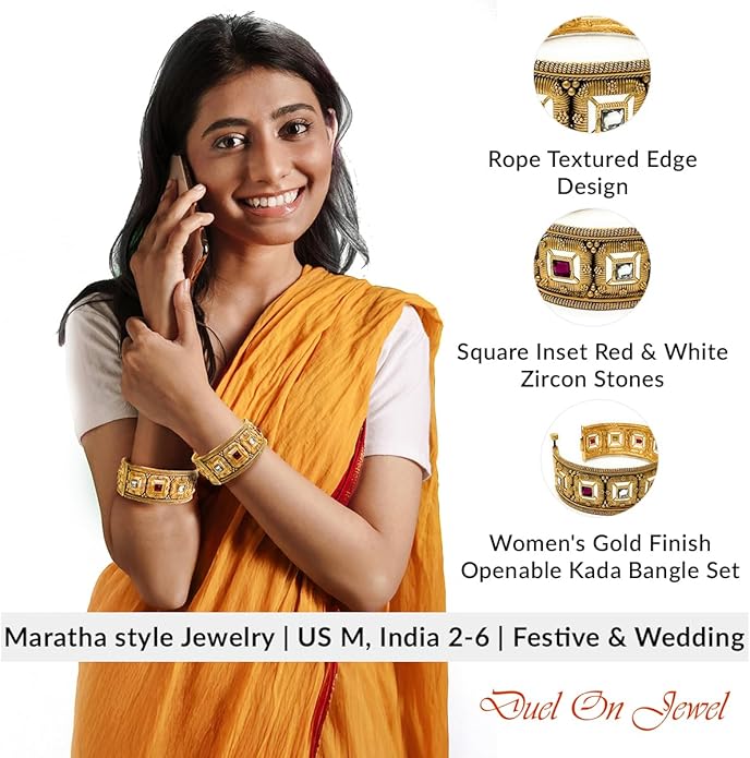 Size GuideThe Maratha-Inspired Openable Kada Bangle Bracelet Set is a majestic tribute to the bold artistry of the Maratha Empire. Handcrafted with a 5K gold-plated finish, each bangle features a powerful...