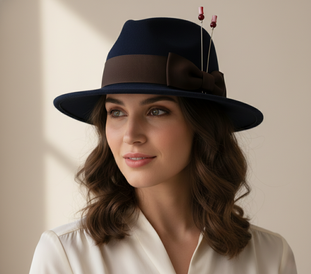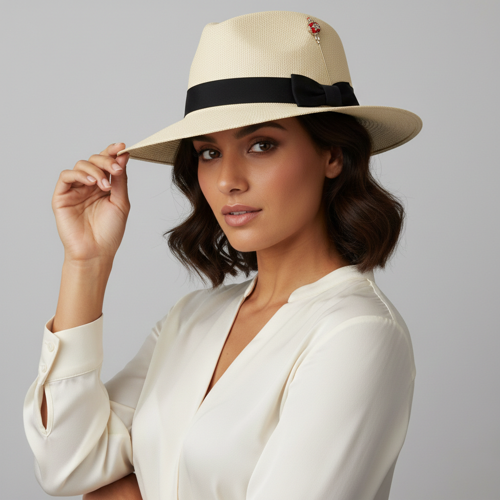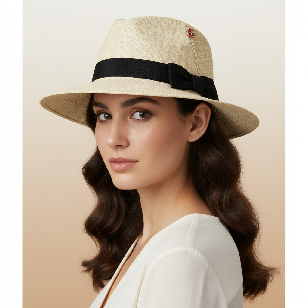 Size GuideElegant Feather & Metallic Accent Design This eye-catching hat pin features a luxurious white feather plume paired with a rose gold-tone metal base adorned with amber rhinestones. The botanical motif...